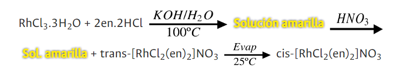 El complejo cristaliza por adición de etanol. Algunas veces las reacciones son muy lentas y se necesitan condiciones más drásticas, como la ebullición. También es posible que más de un tipo de ligante se sustituya durante la reacción: