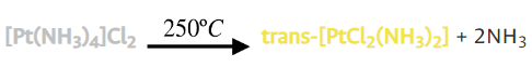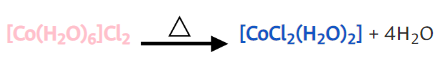 A temperaturas elevadas los ligantes volátiles se pierden y entonces los aniones del complejo entran a formar parte de la entidad de coordinación. Ejemplo: