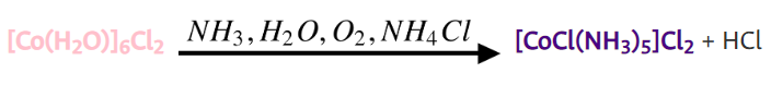 Muchas veces, la preparación de complejos metálicos involucra reacciones de óxido-reducción. Por lo general los complejos de Co (III) se preparan a partir de sales sencillas de Co(II), que es el estado de oxidación más estable para éstas. Por otra parte, los complejos de Co(II) sufren reacciones de sustitución más rápidamente que los de Co(III); la formación de complejos a partir de Co(III) es un proceso muy lento.