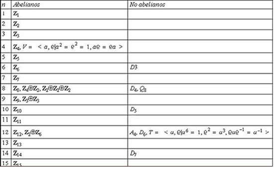 Con la información obtenida en éste y el capítulo anterior podemos determinar (salvo isomorfismo) todos los grupos 15.